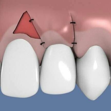 Le lambeau repositionné latéralement : la gencive est récupérée sur une des dents voisines